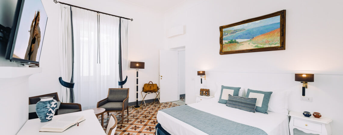 Ogni camera, finemente arredata, conserva gli antichi pavimenti d’epoca; il terrazzo panoramico, che affaccia nel cuore di Amalfi e dal quale si scorge il mare, è ideale per colazioni, aperitivi e dopo cena in totale relax e privacy.